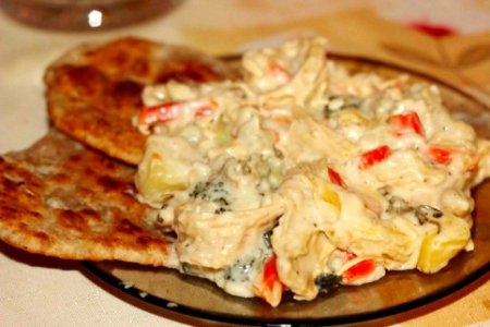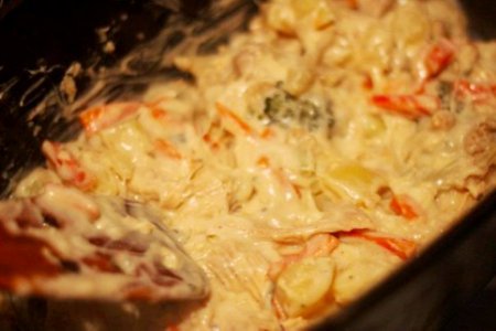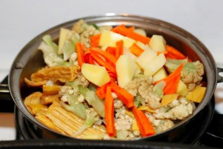 - Шаг 7 Прибавляем овощные культуры в соус, добро мешаем и подаем к столу.