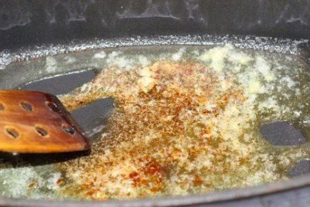 - Шаг 2 В глубочайшей сковороде растапливаем сливочное масло на малолетнем огне. Снимаем с огня, прибавляем асафетиду и мускатный орешек.