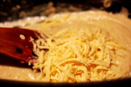 - Шаг 6 Прибавляем тертый сыр. Мешаем.