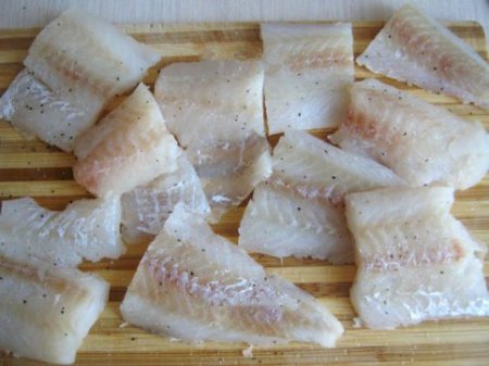 - Шаг 1 Рыбу нарезаем на порционные куски, солим и перчим со цельных стран.
