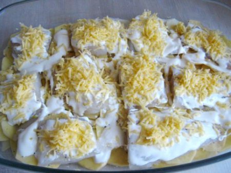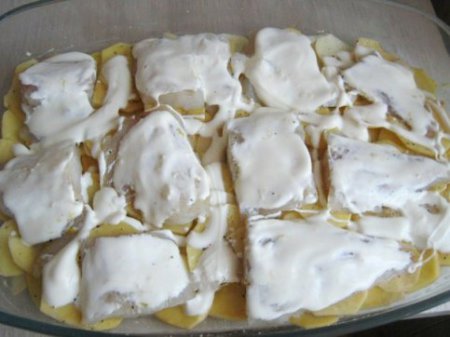 - Шаг 4 Сверху рыбу обильно смазываем сметаной.