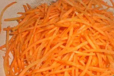 - Шаг 2 Морковь вычищаем, трем на большой терке.