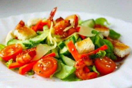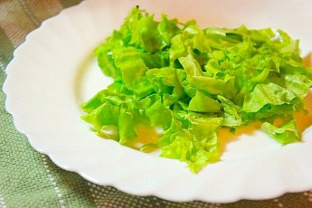 • Шаг 8 Набавляем в салат креветки, тонко порезанный укроп , соль, перец, кунжут. Заправляем растительным маслом и лимонным соком. Приятного аппетита!