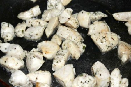 • Шаг 3 Курицу выкладываем на разогретую сковороду с маслом и обжариваем до золотистого цвета.