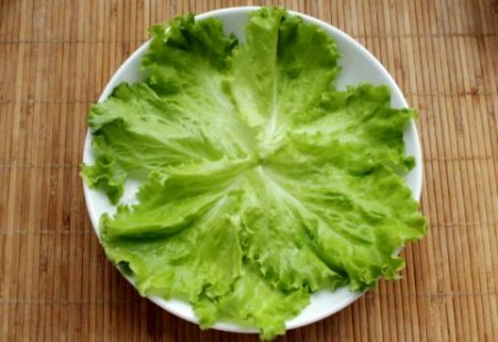 • Шаг 4 Листья салата ладно моем и выкладываем на плоское блюдо.