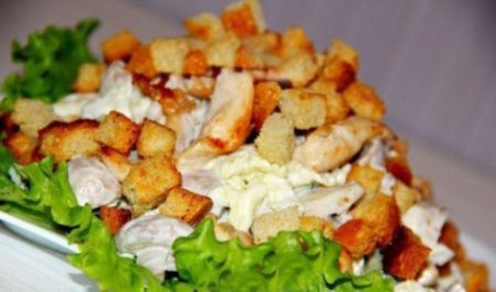 • Шаг 8 Выкладываем салат в салатник, посыпаем сверху сухариками и подаем к столу. Приятного аппетита!