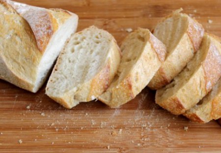 • Шаг 3 Багет режем на куски, подсушиваем в тостере, либо в духовке, либо на неотзывчивый сковороде.