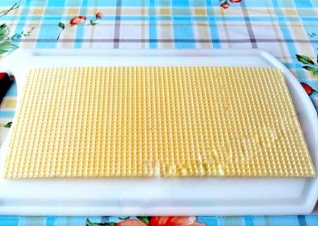 • Шаг 2 Вафельный лист выкладываем на разделочную дощечку. Намазываем горячим картофельным пюре вафли, ждем несколько минут, пока вафли станут мягенькими, но не передерживаем.